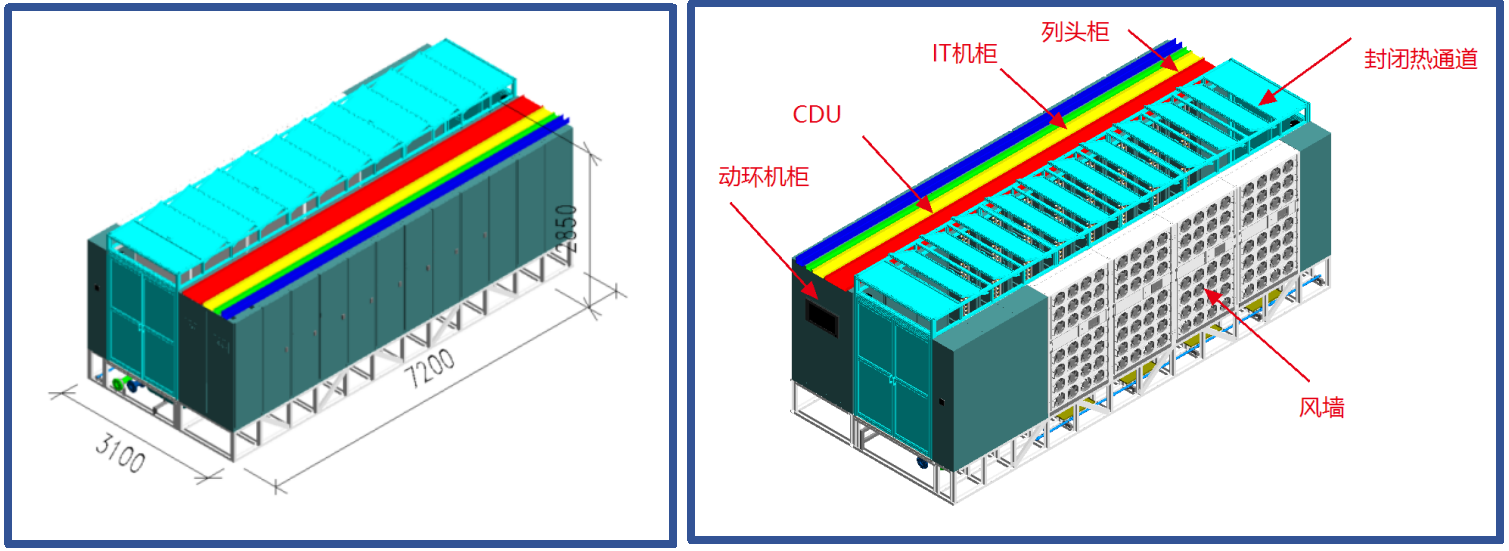 5)集成供配电、、冷冻水风墙和冷冻水管路、、CDU和二次侧管路以及manifold、、、机柜、、、动环管理等功能;