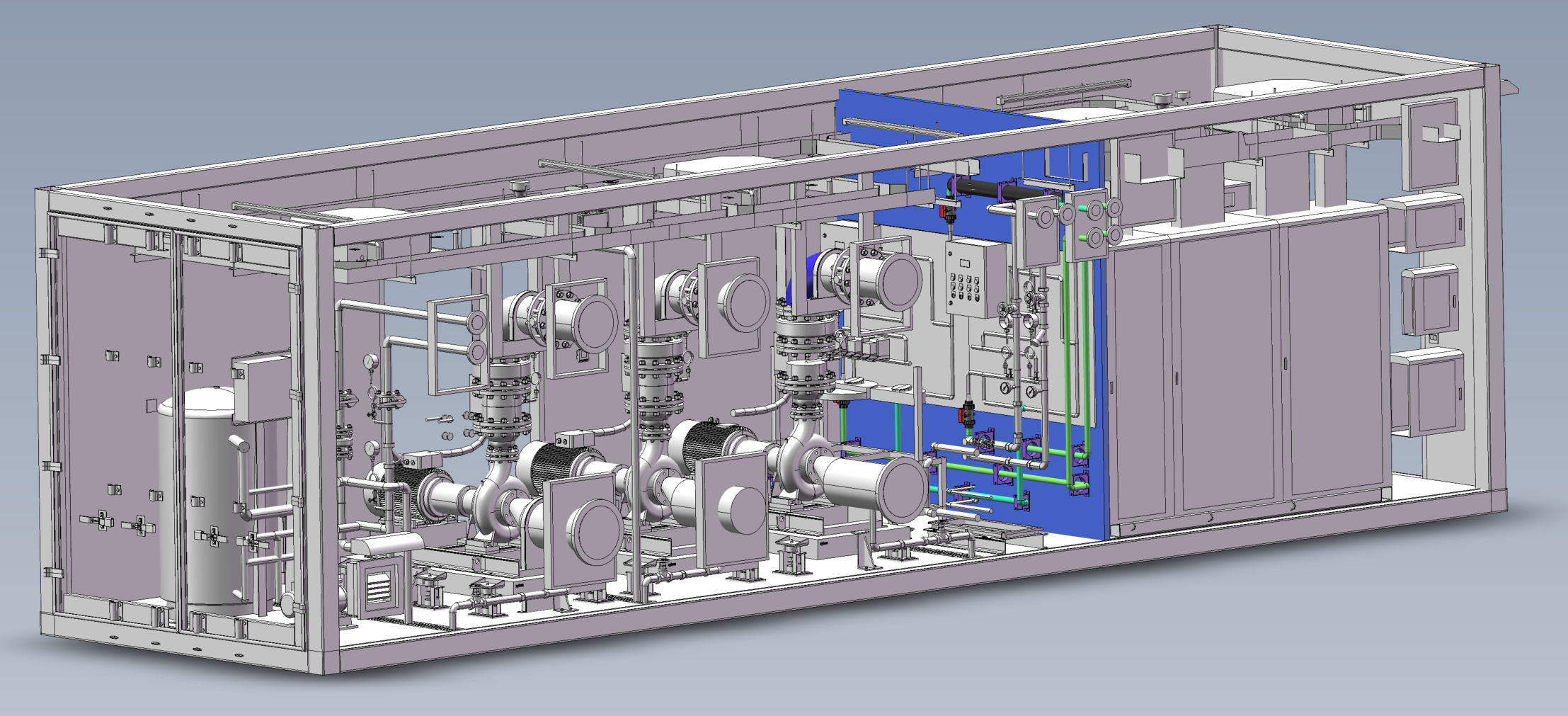 成都简州集成设备由水处理设备、、自动定压装置、、自动加药装置、、、旁滤装置、、循环水泵、、、、水源热泵、、、电气、、、、控制等集成在一个箱体内;